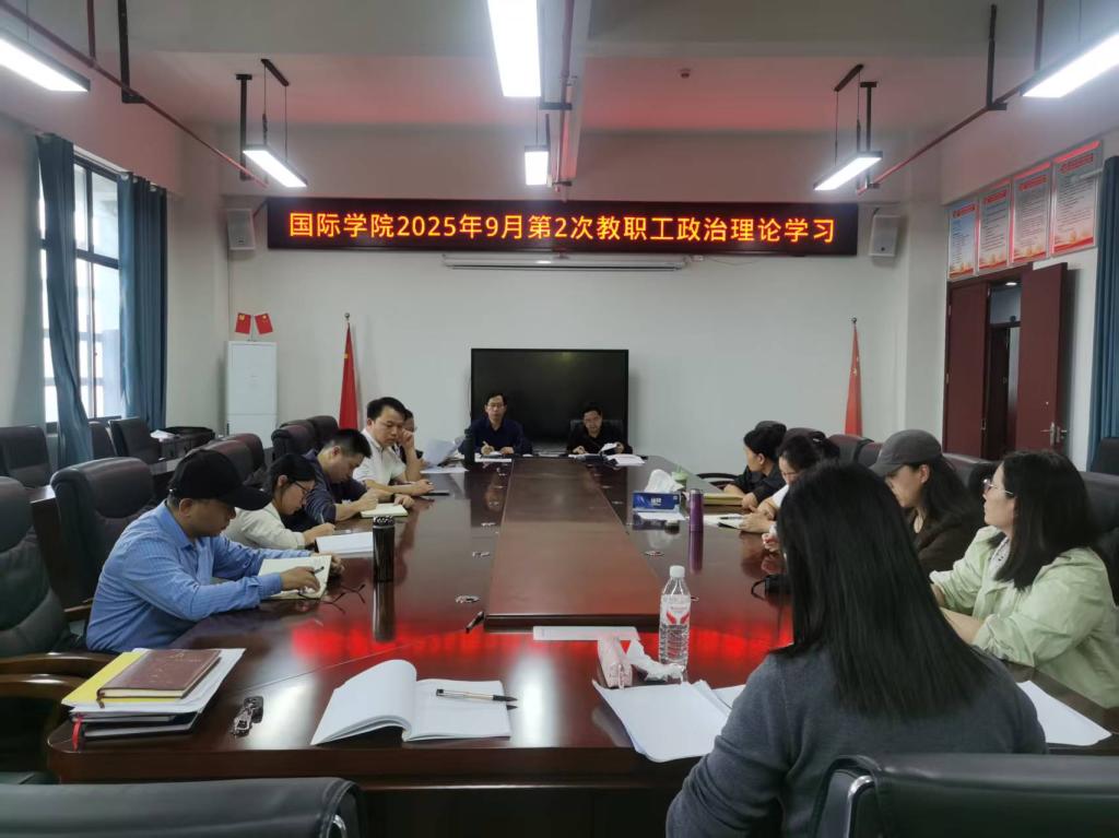 9月23日下午,国际学院在实训楼D807会议室组织召开9月第二次教职工政治理论学习会。学习由学院党总支书记伍宗富主持,全体教职工参加。