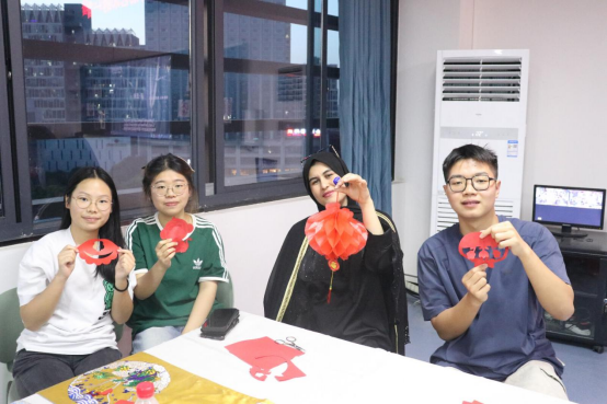 活动最后,同学们依次上台展示自己的剪纸作品并合影留念,留下最珍贵的一幕。覃委员亲身参与与留学生进行双语交流,她表示:“剪纸是民俗活动的重要组成部分。此次活动精彩纷呈,与留学生互动,交流文化习俗,不仅能拓宽学生的国际视野,也为宣传民俗文化提供了平台。”来自俄罗斯的留学生Leonova Eva表示:“这是我第一次尝试剪纸,太有趣了!通过剪纸,我不仅学到了新的手工技能,还感受到了中国传统文化的博大精深。”