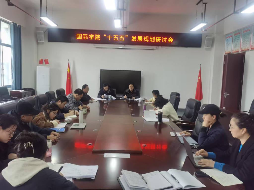 2025年11月18日国际学院组织召开“十五五”发展规划专题研讨会,围绕学院未来五年发展蓝图进行深入研讨和战略部署。会议由院长丁杰主持,学院全体教师参会。