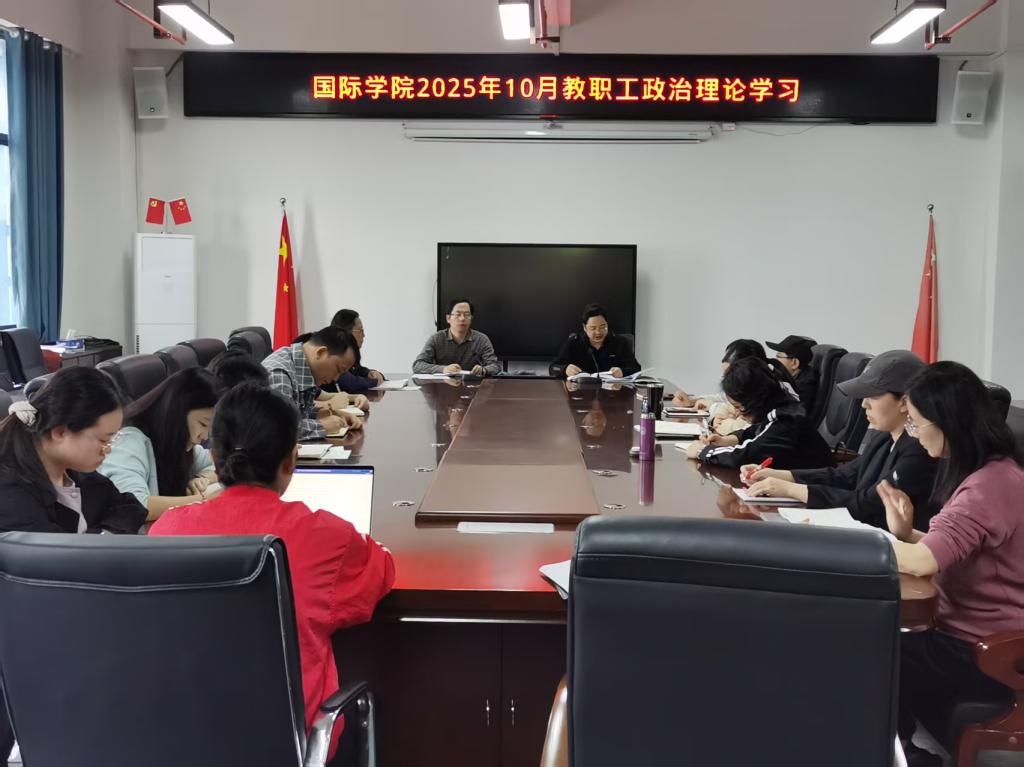 2025年10月15日下午,国际学院在D807会议室组织召开10月教职工政治理论学习会,同步就学校教学和科研领域专项巡察工作进行专题动员部署。会议由学院党总支书记伍宗富主持,全体教职工参加。