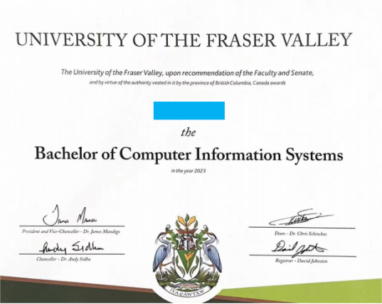 加拿大菲莎河谷大学证书样表