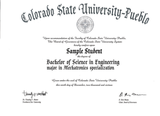 美国科罗拉多州立大学普韦布洛分校证书样表