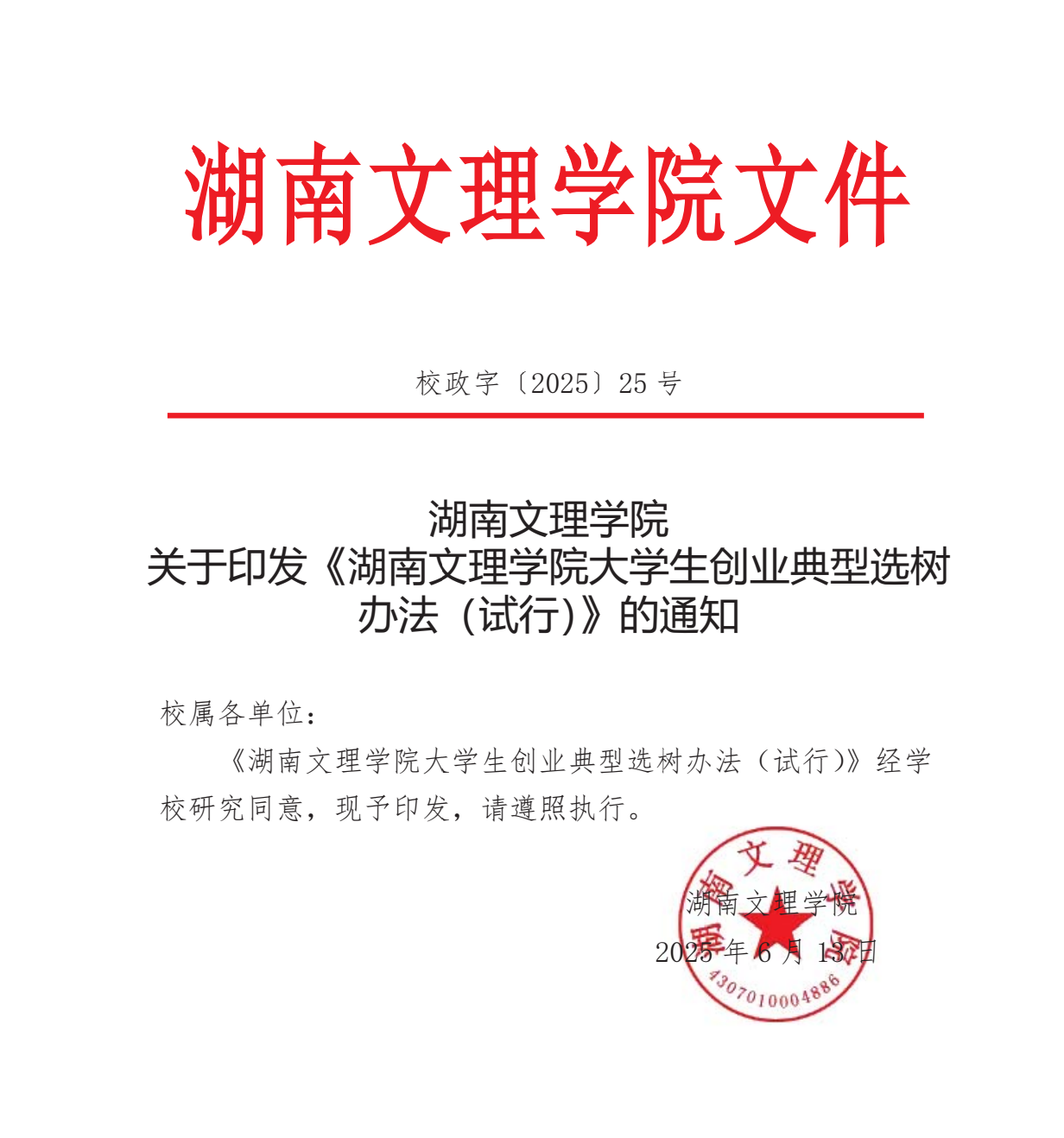 湖南文理学院大学生创新创业政策文件